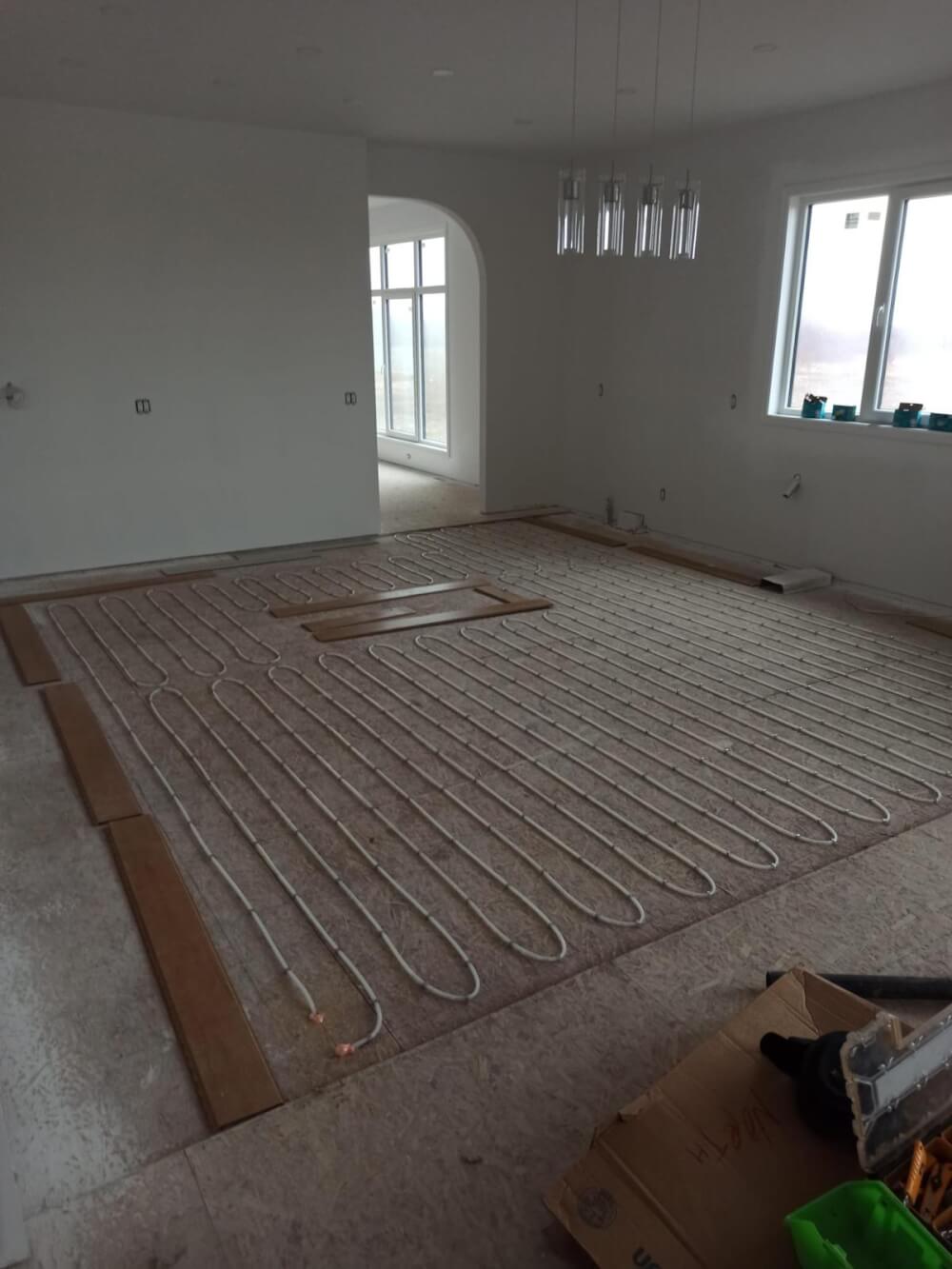 Radiant floors use warm water running through pipes in or under the floor to heat rooms from the ground up. The floor surface stays comfortably warm, rooms heat evenly, and there are no drafts or noisy fans.