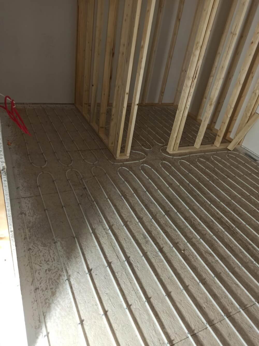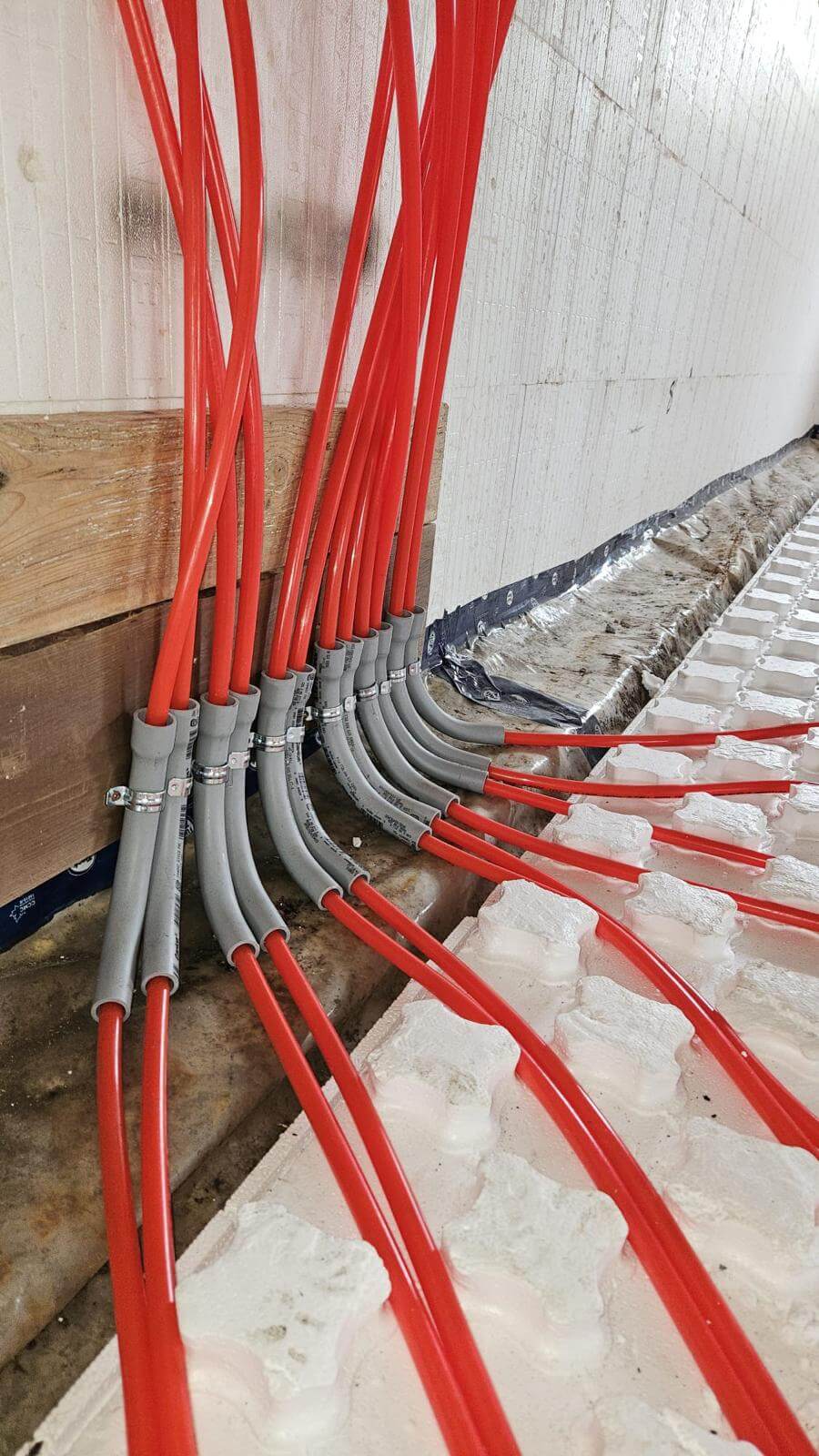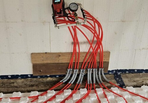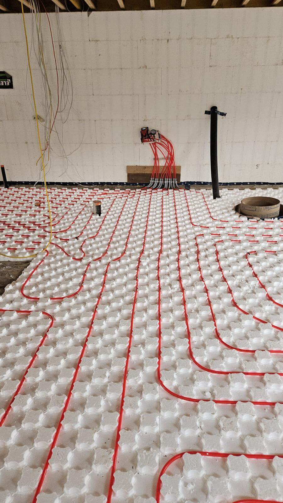 A primary loop and manifolds that distribute water to the different floor zones.