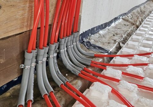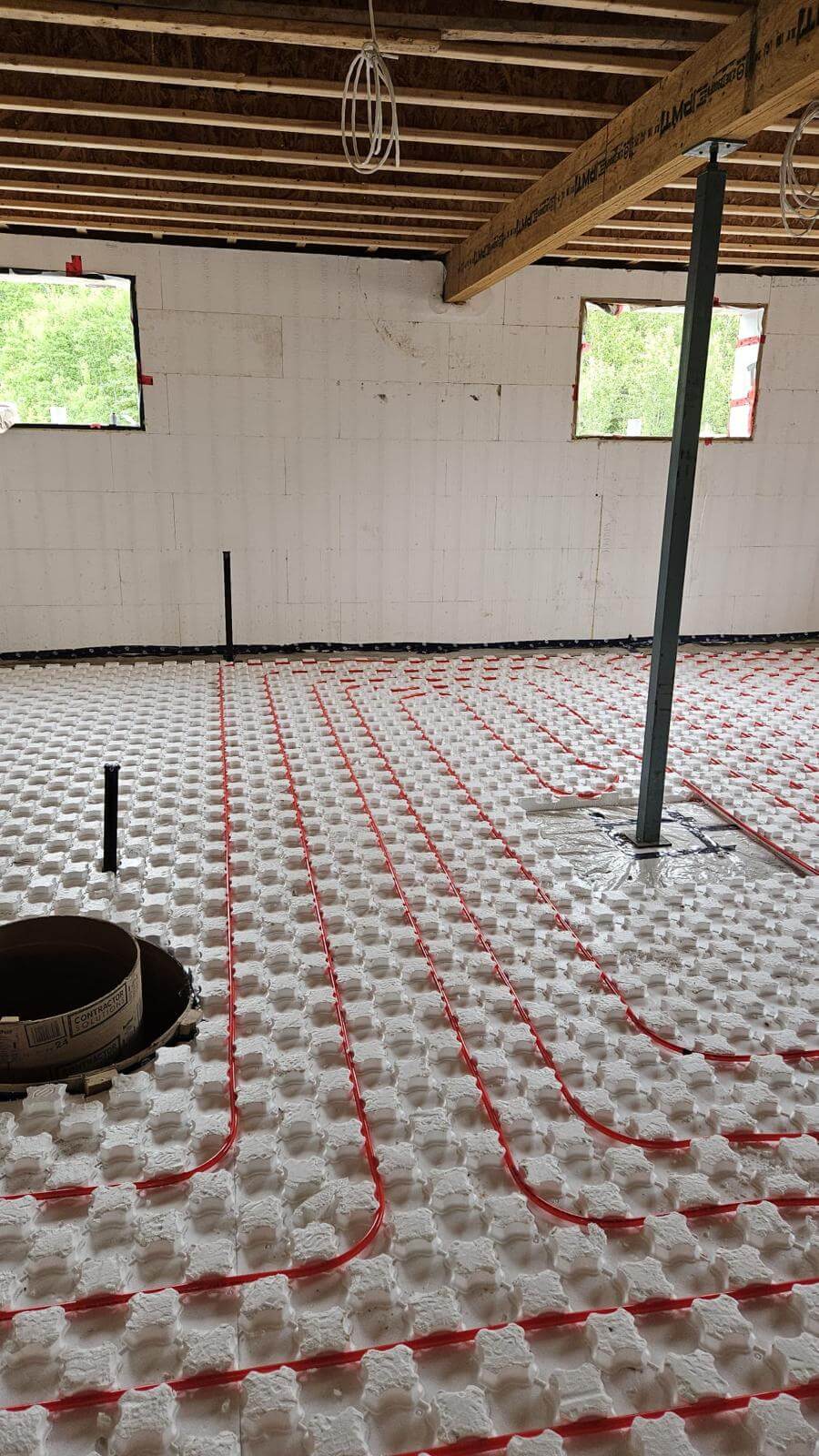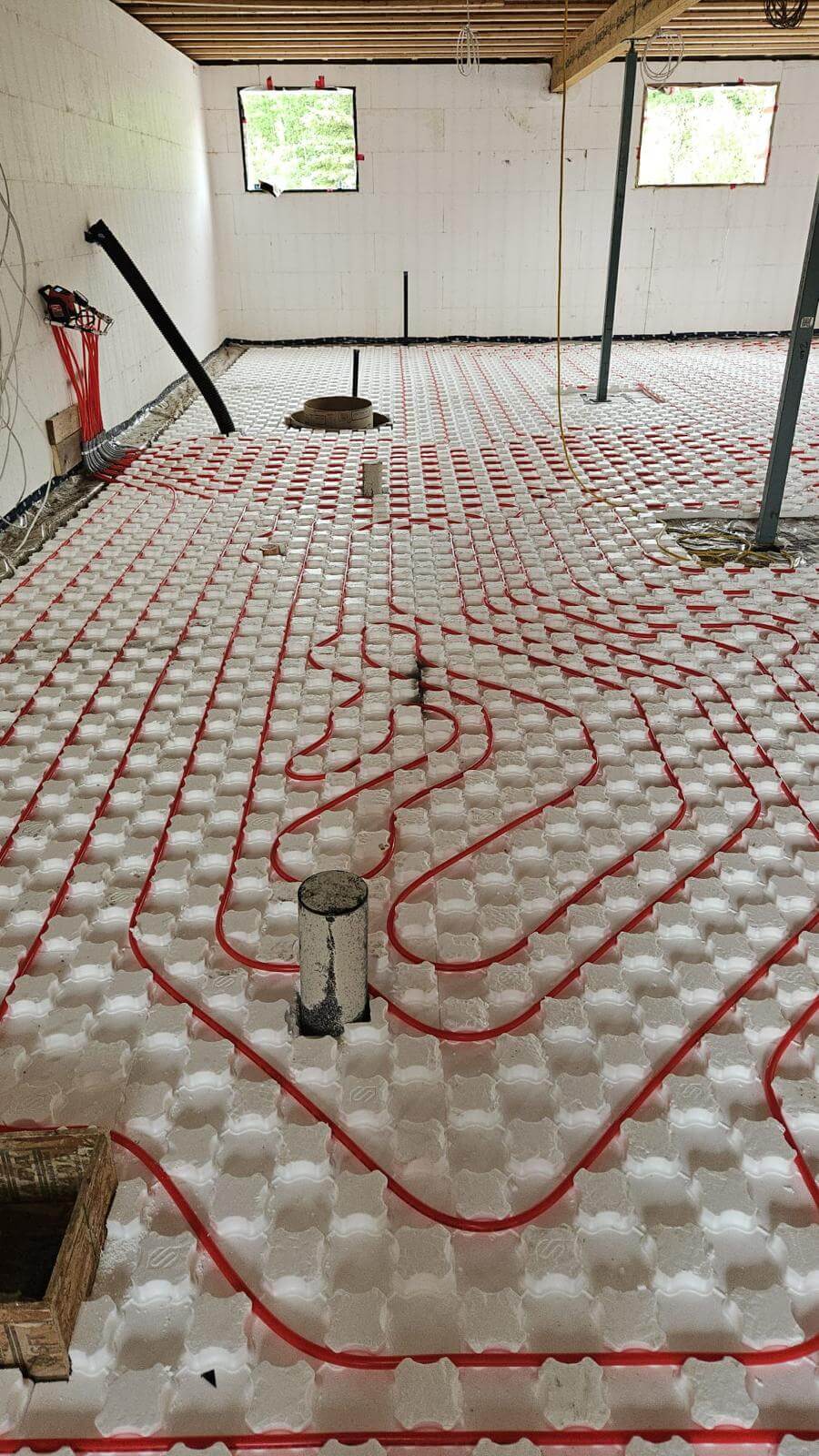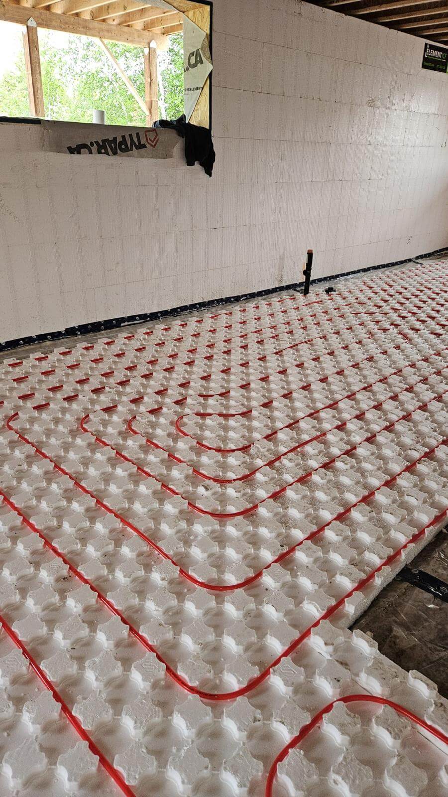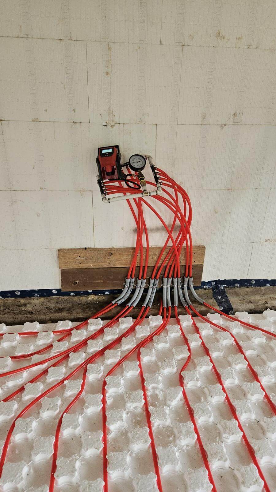 A primary loop and manifolds that distribute water to the different floor zones.